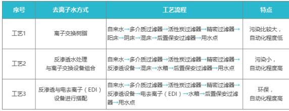 去離子水指標(biāo)工藝及特點(diǎn):