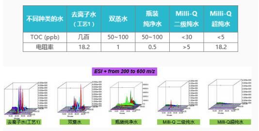 接下來我們看一下不同水質(zhì)對LC-MS背景分析的影響:
